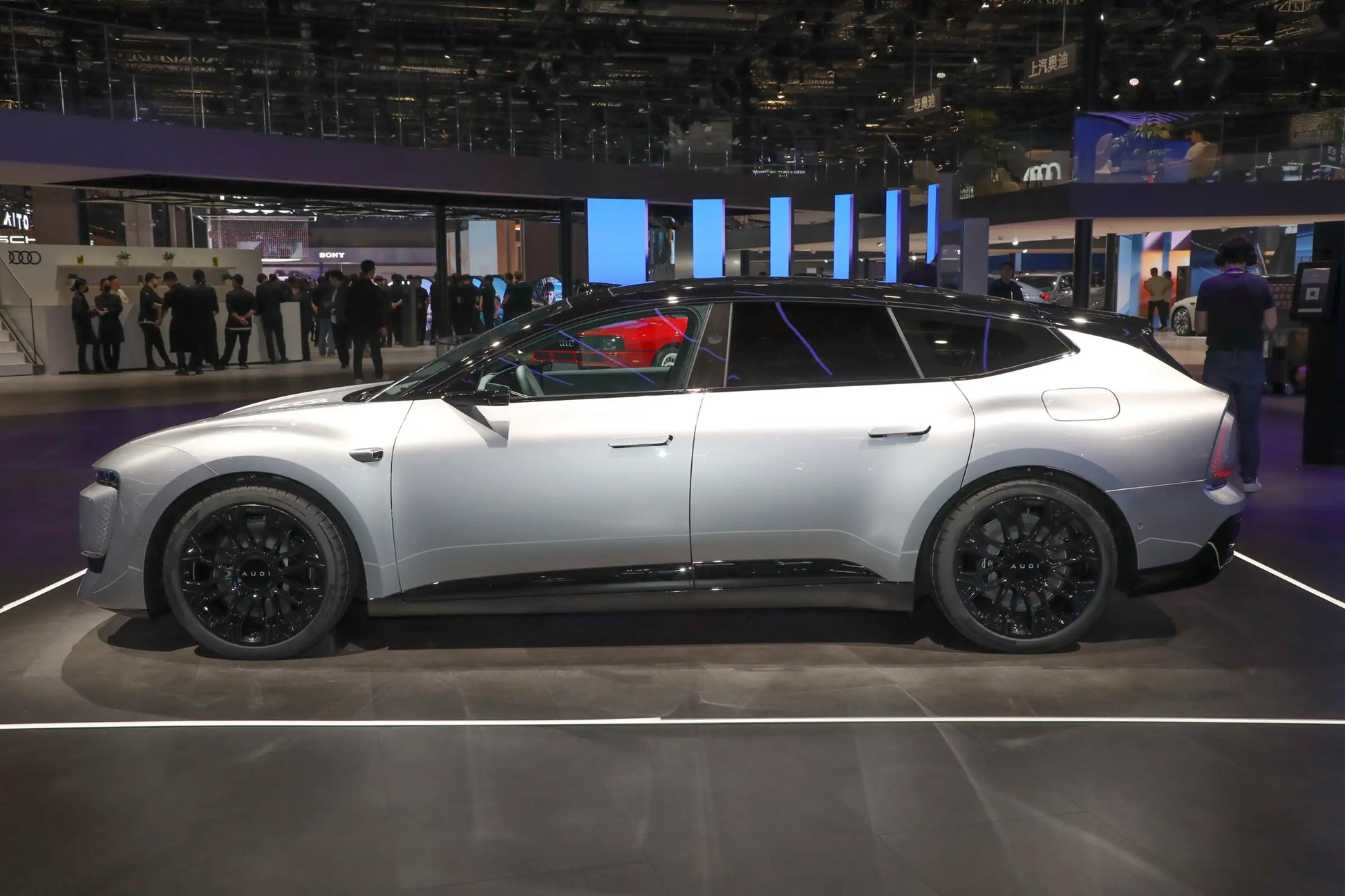 I really love the lavender color of the exterior. It gives a very warm feeling, and it seems that no other brand has used this color combination so far. When looking at it from the front, it actually doesn't look like an Audi at all. Without the "constraint" of the hexagon and the four rings, the only thing that can show it's an Audi is its sharp lights, which the official calls the "Circular Star Diamond Light Curtain". Paired with the illuminated "AUDI" logo, it looks very technological. In addition, this car is also equipped with hidden door handles. What's curious is its ultra - clear electronic exterior rear - view mirror, which replaces the traditional rear - view mirror. It is said to be able to broaden the field of vision and reduce blind spots, but this remains to be evaluated by subsequent car owners.