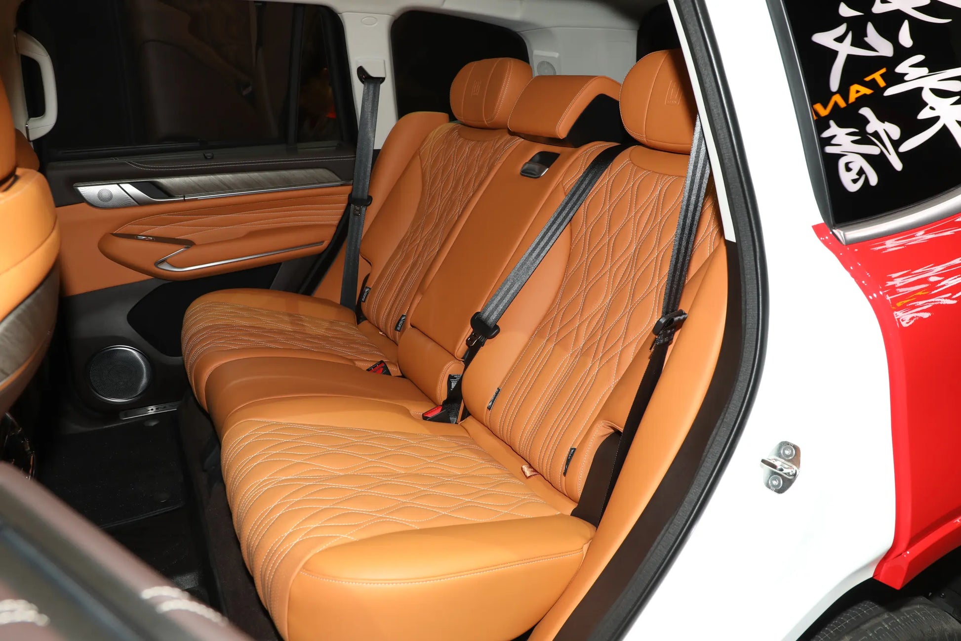 First of all, in terms of appearance, I think it's quite appealing. The overall style is relatively tough, the car is quite large, and it has its own aura. In addition, in terms of paintwork, it uses a red-white gradient color scheme, which is quite个性化, and it gets a lot of回头率 when driving on the road.