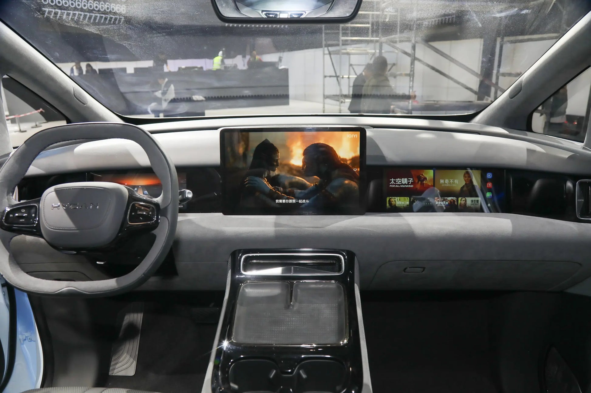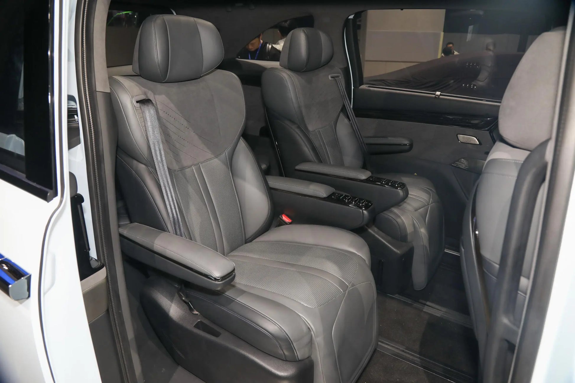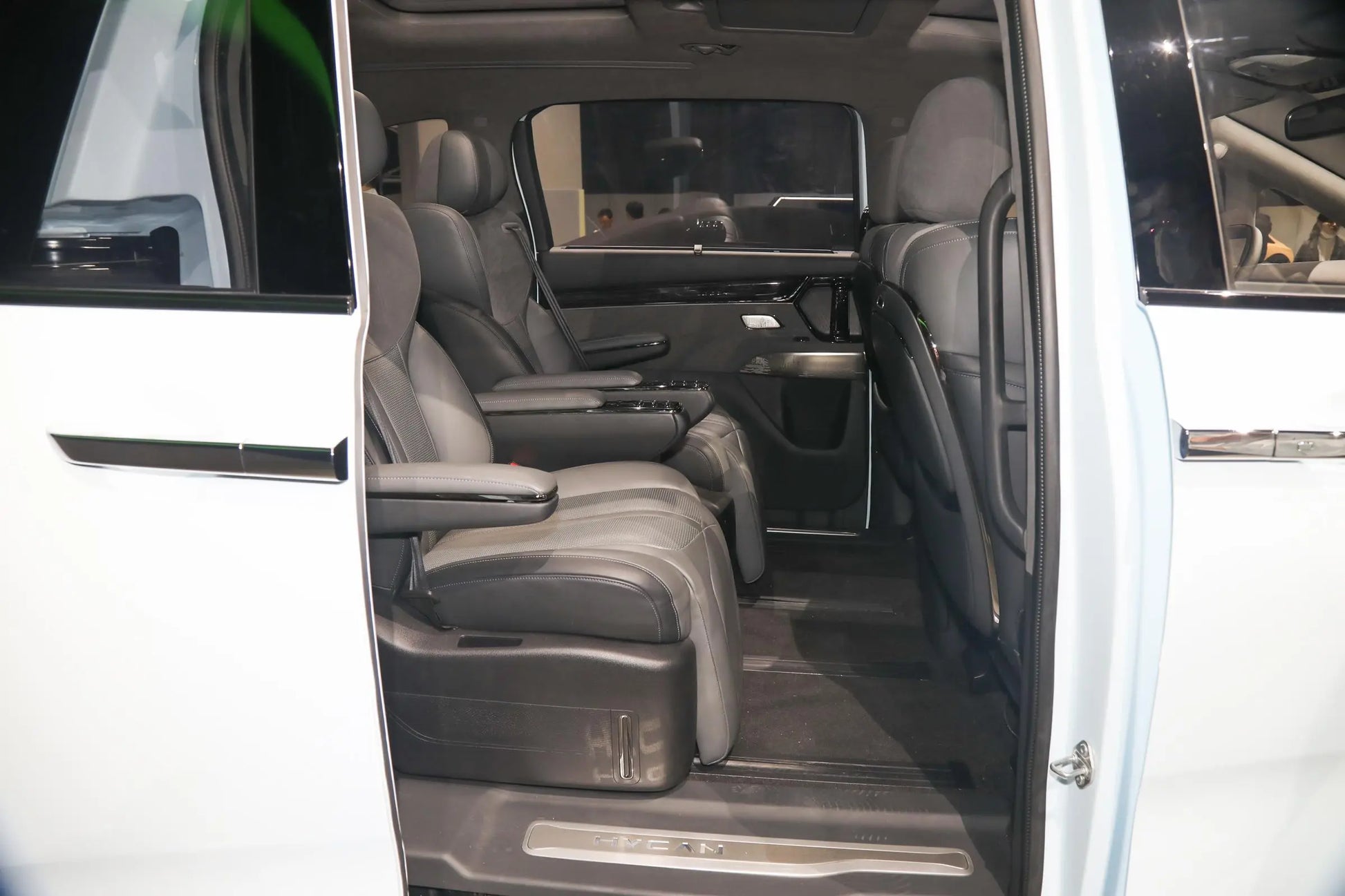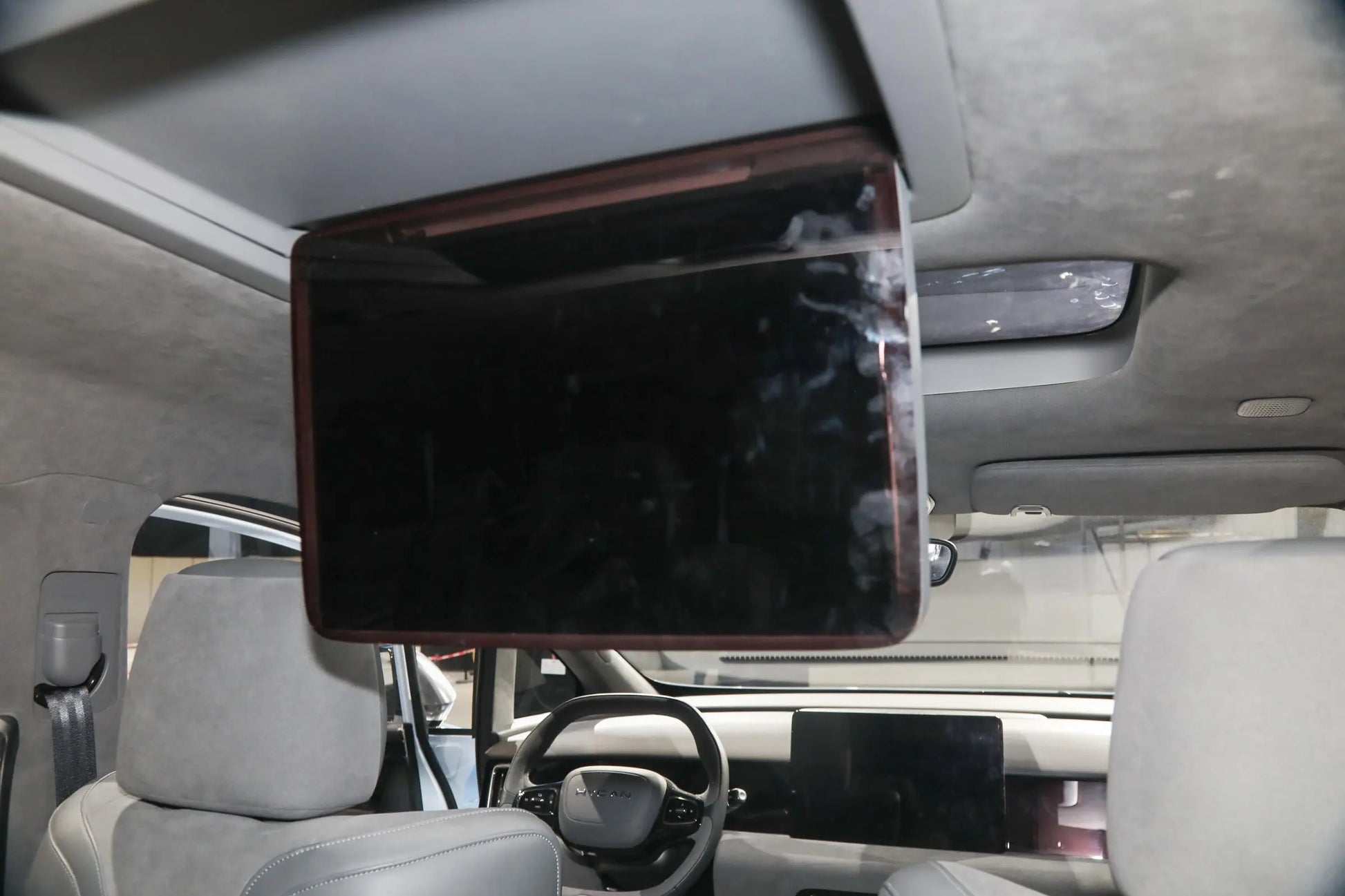 Una vez dentro del coche, encontrarás múltiples pantallas combinadas. El control central está equipado con un chip Qualcomm Snapdragon 8155, lo que hace que el sistema del coche funcione muy suavemente. Está cubierto con una gran área de materiales suaves, que se sienten geniales al tacto. Los asientos de cuero NAPPA se ven muy gruesos y de alta calidad, y de hecho son muy cómodos para sentarse. El pasillo central en el medio también es bastante ancho. Uno podría pensar que comprimiría el espacio para sentarse a ambos lados, pero de hecho, el espacio para sentarse sigue siendo muy espacioso. Al movernos a los asientos de la segunda fila, puedes ver la cuarta pantalla montada en el techo tan pronto como miras hacia arriba. Imagina acostarte en la segunda fila, viendo televisión mientras viajas, y los asientos incluso tienen una función de masaje. ¿No es eso asombroso? Además, el espacio para sentarse en la segunda fila es aún más grande, y puedes estirar completamente las piernas al acostarte. El espacio para la cabeza en la tercera fila también es decente. No tienes que levantar las piernas alto como si estuvieras sentado en un pequeño taburete, aunque la longitud del asiento es un poco corta.