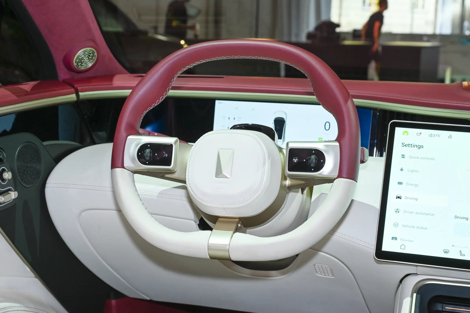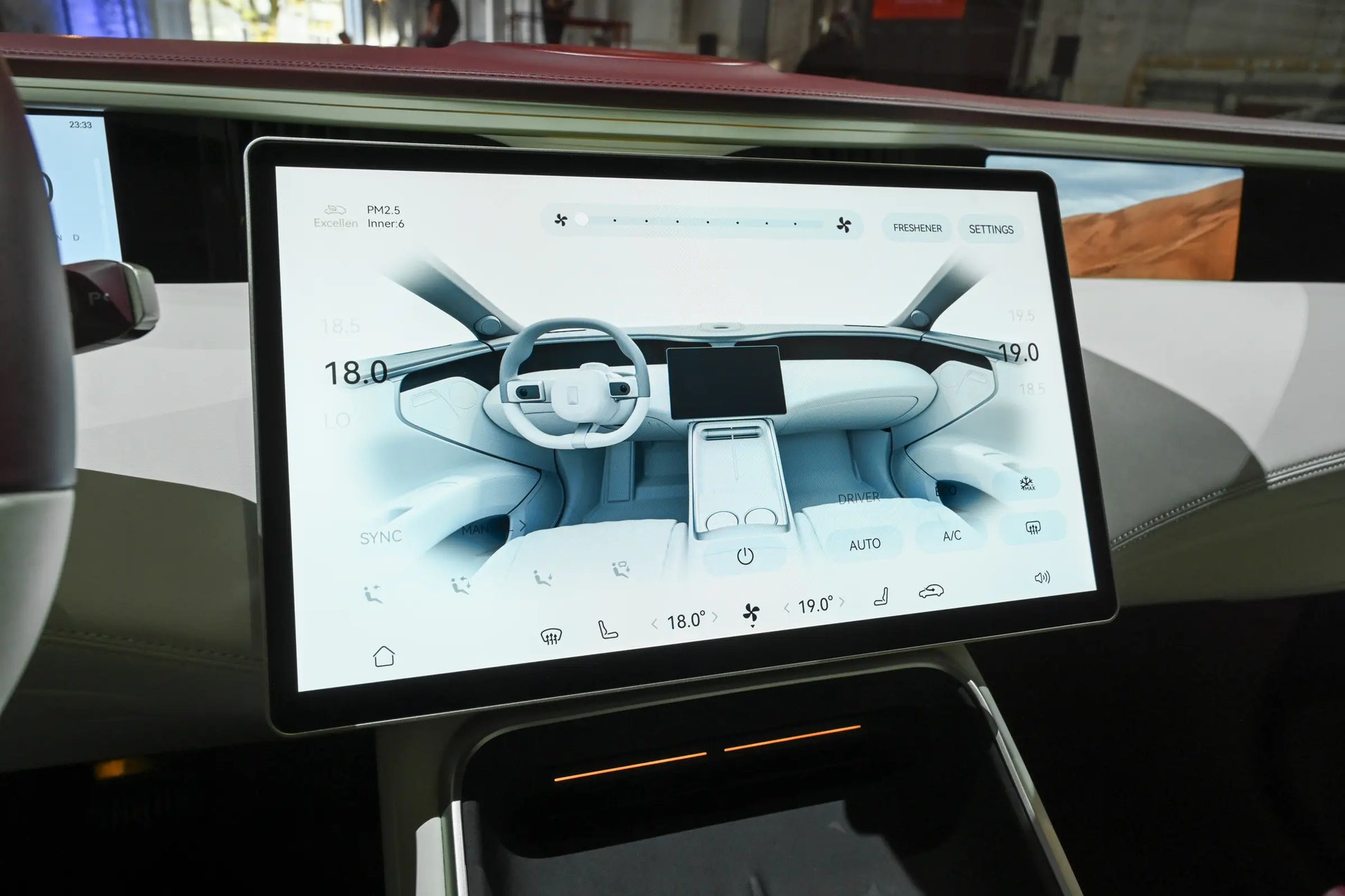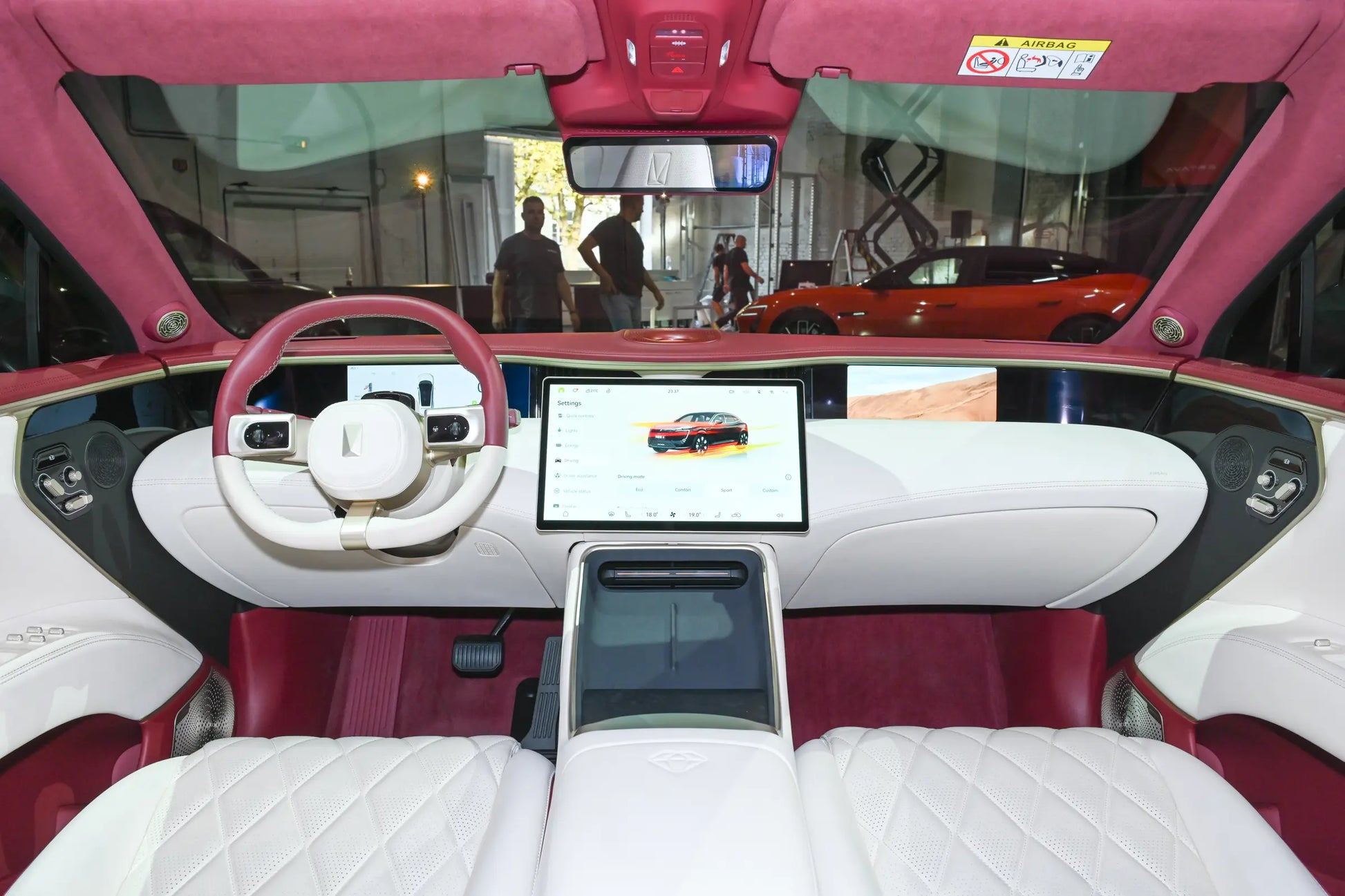 Lo mismo ocurre con el interior. Aunque también hay tres pantallas, el diseñador ha ideado algunos trucos. Las pantallas pequeñas a ambos lados tienen un diseño empotrado, y hay una clara división de áreas desde el volante y la gran pantalla de control central.
